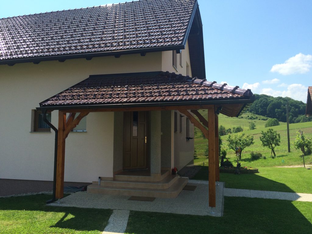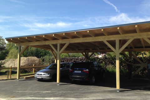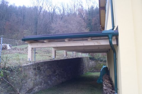 Razrez lesa za nadstreške izvedemo pri nas, na gradbišču pa izvedemo le montažo.